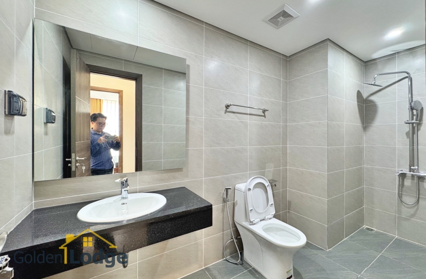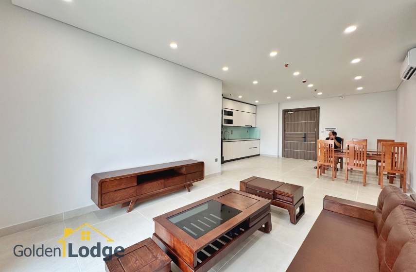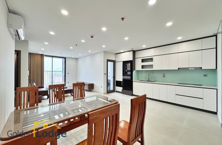 We update this 2 bedroom apartment in Khai Son City Long Bien for rent. This is a good sized 2 bedroom apartment located on the 16th floor at K5 tower. The property comes with furnished and benefits from a good sized living room with marble flooring and comprises of a open plan kitchen.